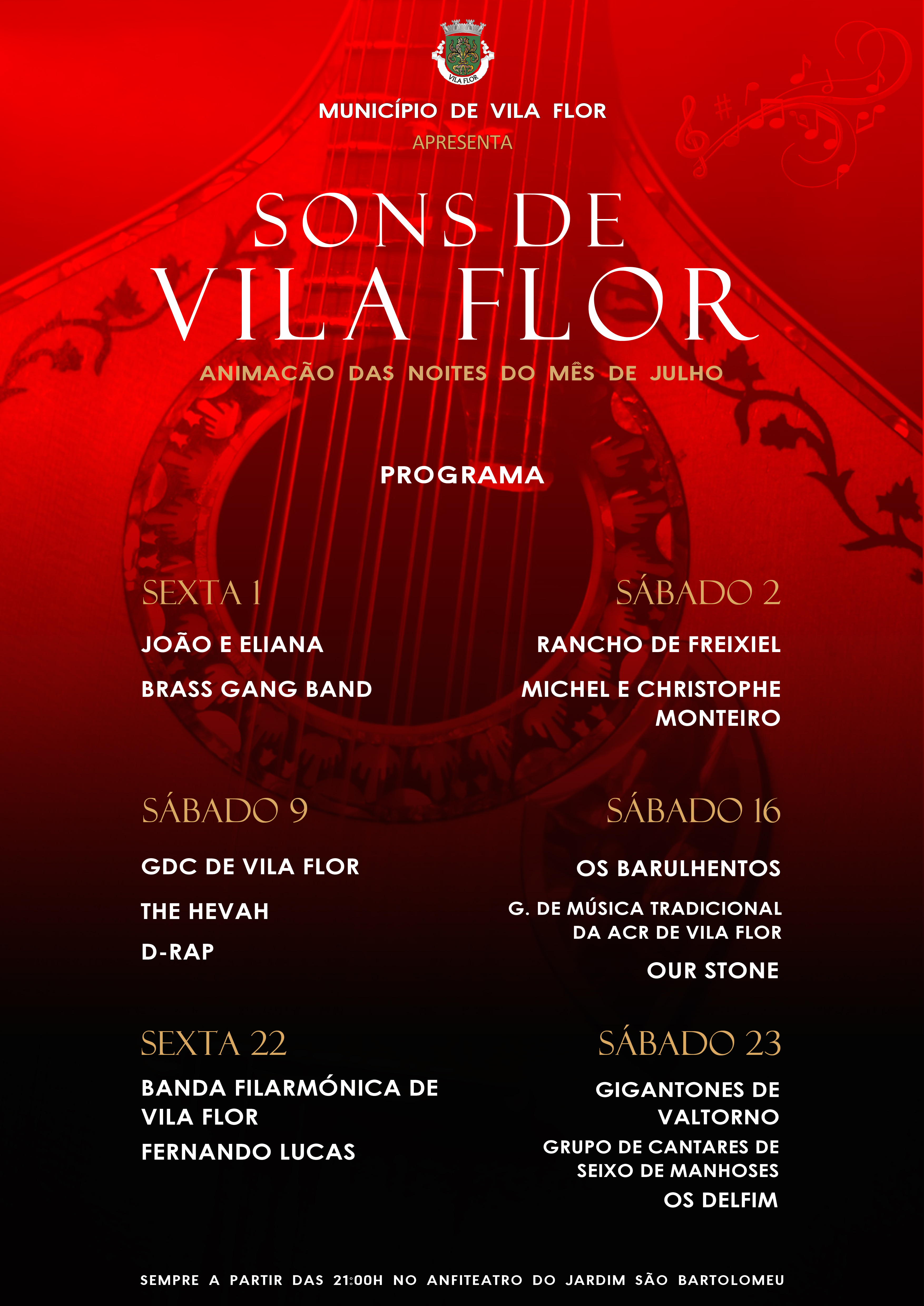 Com música variada e para todos os gostos, ali atuam os grupos musicais existentes no Concelho de Vila Flor. Música pop, fado, rock, tradicional, folclore, etc., são os elementos que alegram, dão cor e animam os fins de semana deste mês.