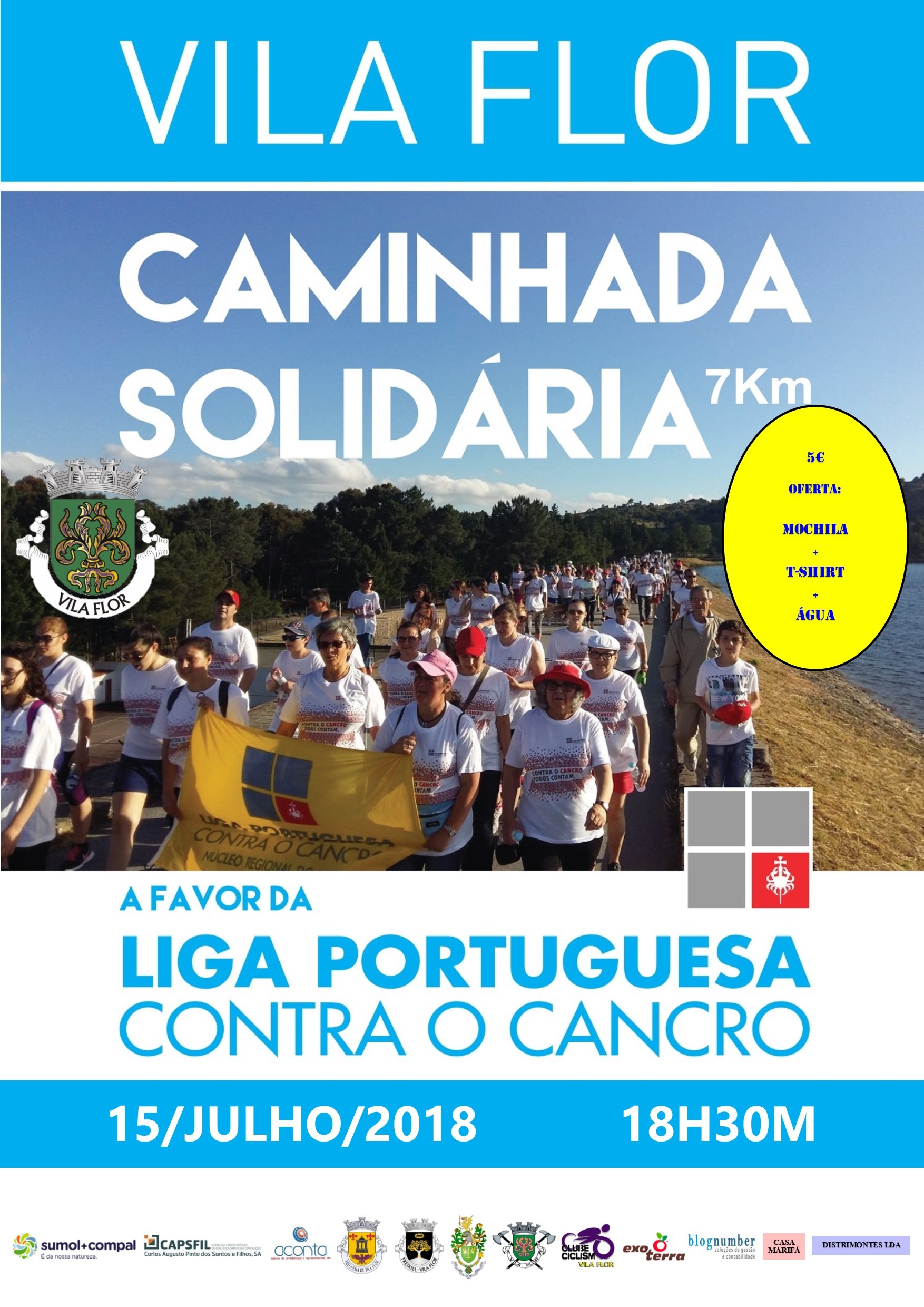 Devido ao mau tempo do passado dia 1 de julho, a organização (Liga Portuguesa contra o Cancro - Núcleo Regional do Norte) decidiu fazer a caminhada no próximo dia 15 de Julho de 2018, pelas 18h30, em Vila Flor.