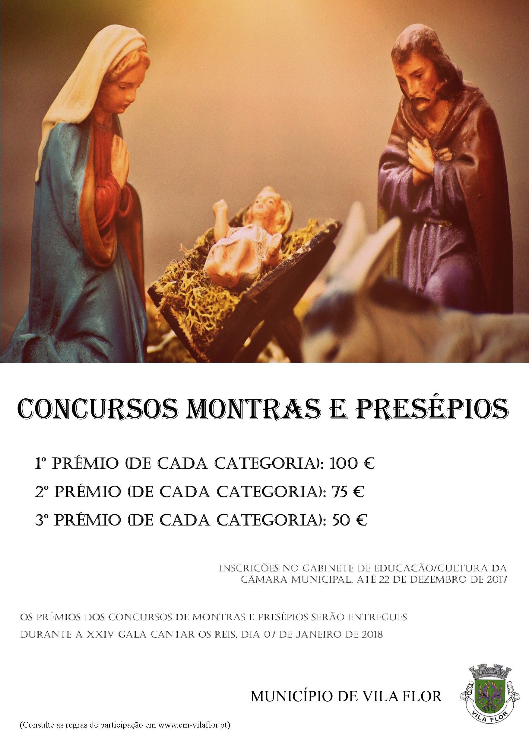 Há já alguns anos que a Câmara Municipal promove os Concursos de Montras e Presépios, no sentido de motivar os comerciantes/instituições/associações/escolas do Concelho a decorar os seus estabelecimentos e a incentivar deste modo, dentro do espírito natalício, a união de moradores de bairros e de todo o Concelho de Vila Flor, para a criação do seu próprio presépio ou decoração de montras. As inscrições realizam-se na Câmara Municipal de Vila Flor, até dia 22 de Dezembro de 2017.
