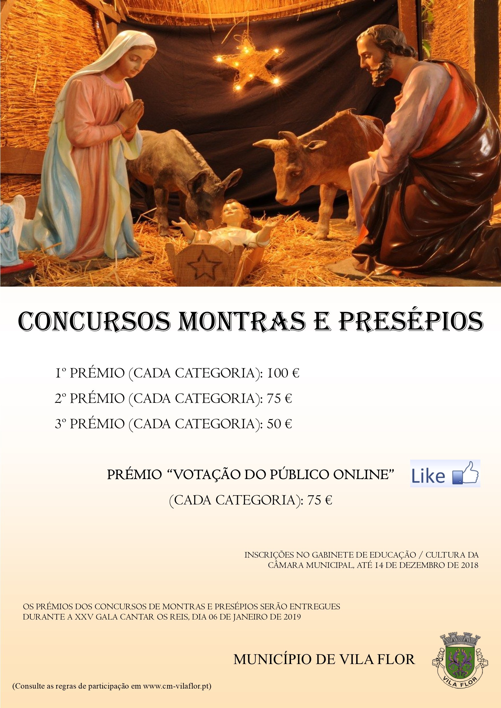 Para os Presépios, é intenção incentivar a união de pessoas em torno de uma associação, escola, freguesia, bairro ou outro espaço público, para a execução de um projeto comum, que certamente enriquecerá a decoração natalícia do Concelho, para todos quantos o visitem nesta quadra.