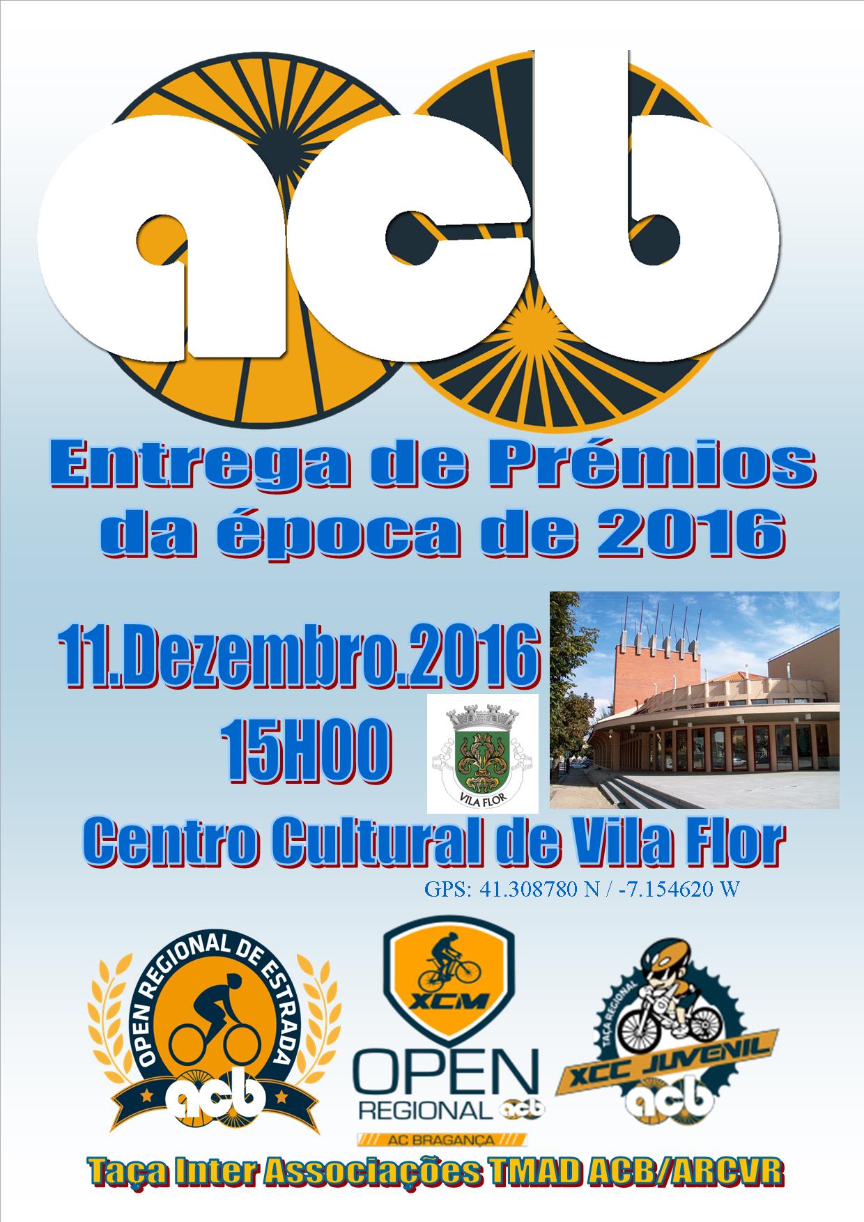 A entrega de Prémios da Associação de Ciclismo de Bragança realizar-se à, em Vila Flor, no dia 11 de Dezembro, no Centro Cultural de Vila Flor.