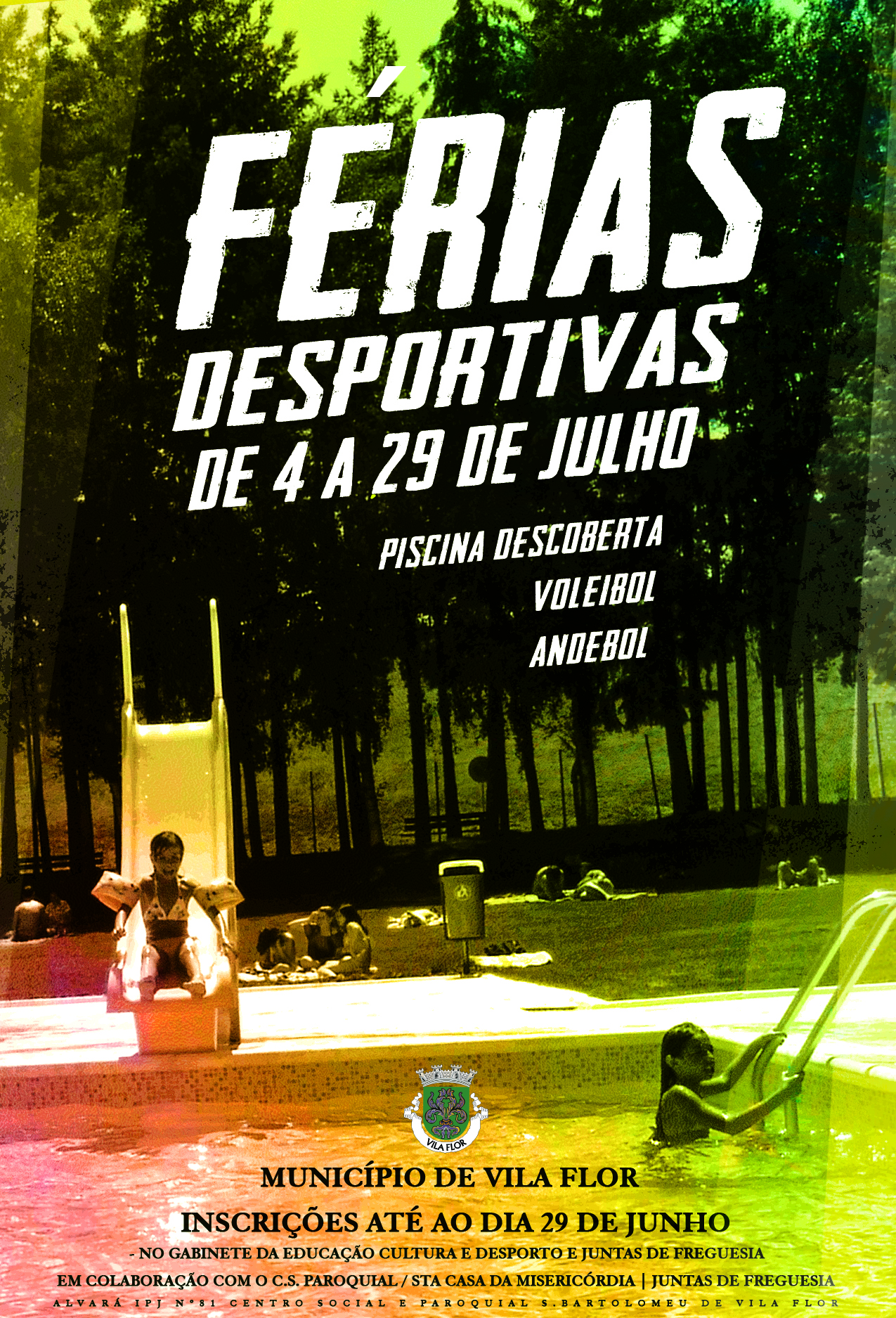 Férias Desportivas 2016 para crianças/jovens dos 6 aos 15 anos. Inscrições até ao dia 29 de junho no Gabinete de Educação, Cultura e Desporto da Câmara Municipal e nas Juntas de Freguesia. Mais uma aposta no desporto.