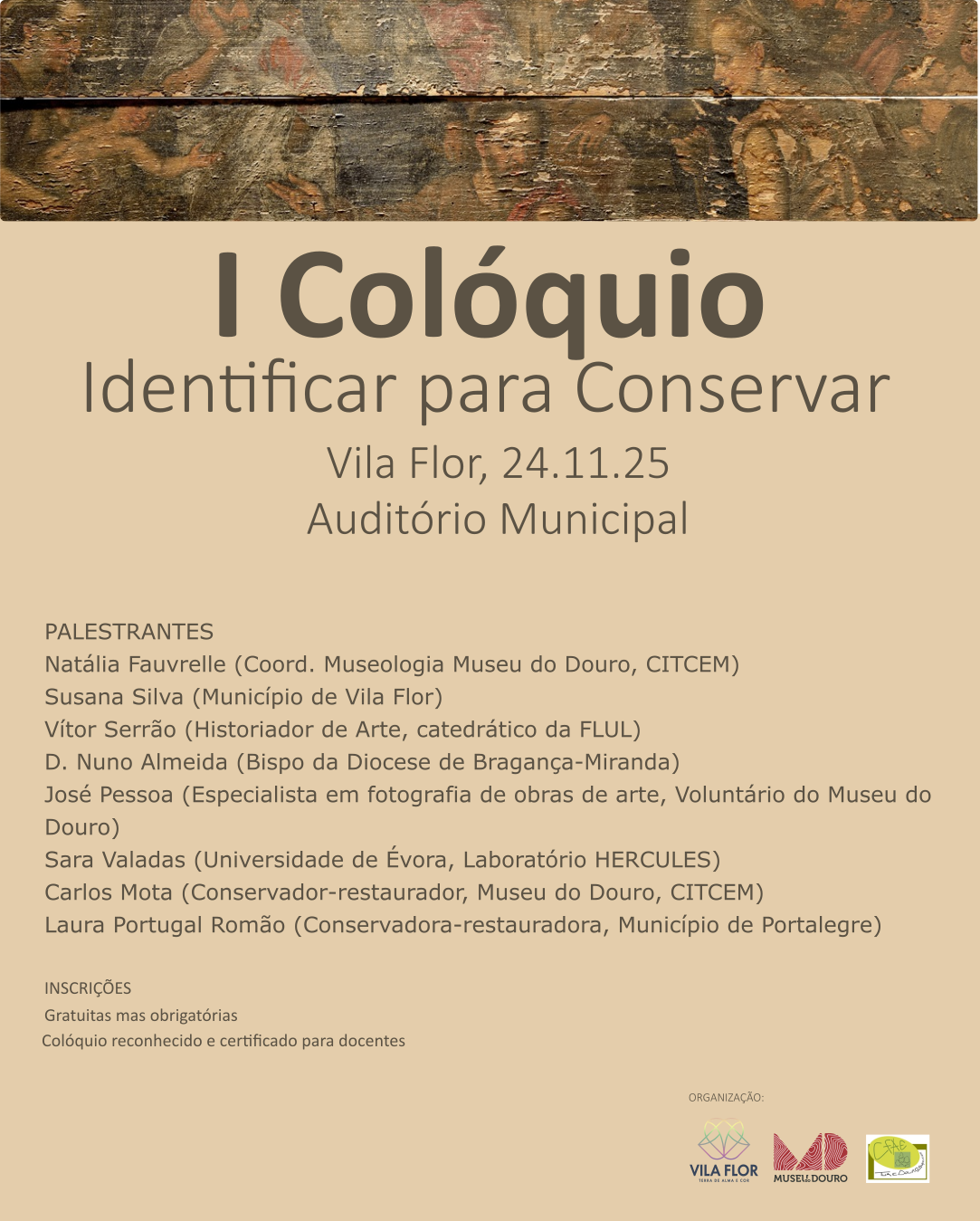 O Município de Vila Flor convida todos a participar no I Colóquio – Identificar para Conservar, com a temática: Uma pintura antiga europeia: da história à conservação contemporânea no Museu Municipal Dra. Berta Cabral de Vila Flor, que contará, entre outros, com a intervenção de D. Nuno Almeida, Bispo da Diocese Bragança-Miranda e do Professor Vítor Serrão, Historiador de Arte e Catedrático da FLUL.