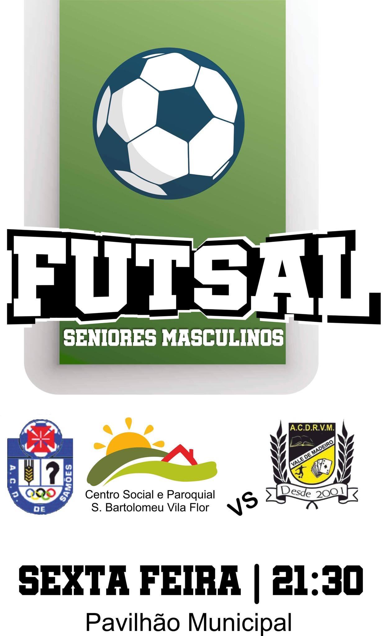 Vai ter lugar no Pavilhão Municipal de Vila Flor, Sexta feira, dia 19 de Outubro, pelas 21.30 horas, o jogo de futsal entre o ACD de Samões/Centro Paroquial S. Bartolomeu vs ACDRVM de Vale de Madeiro.