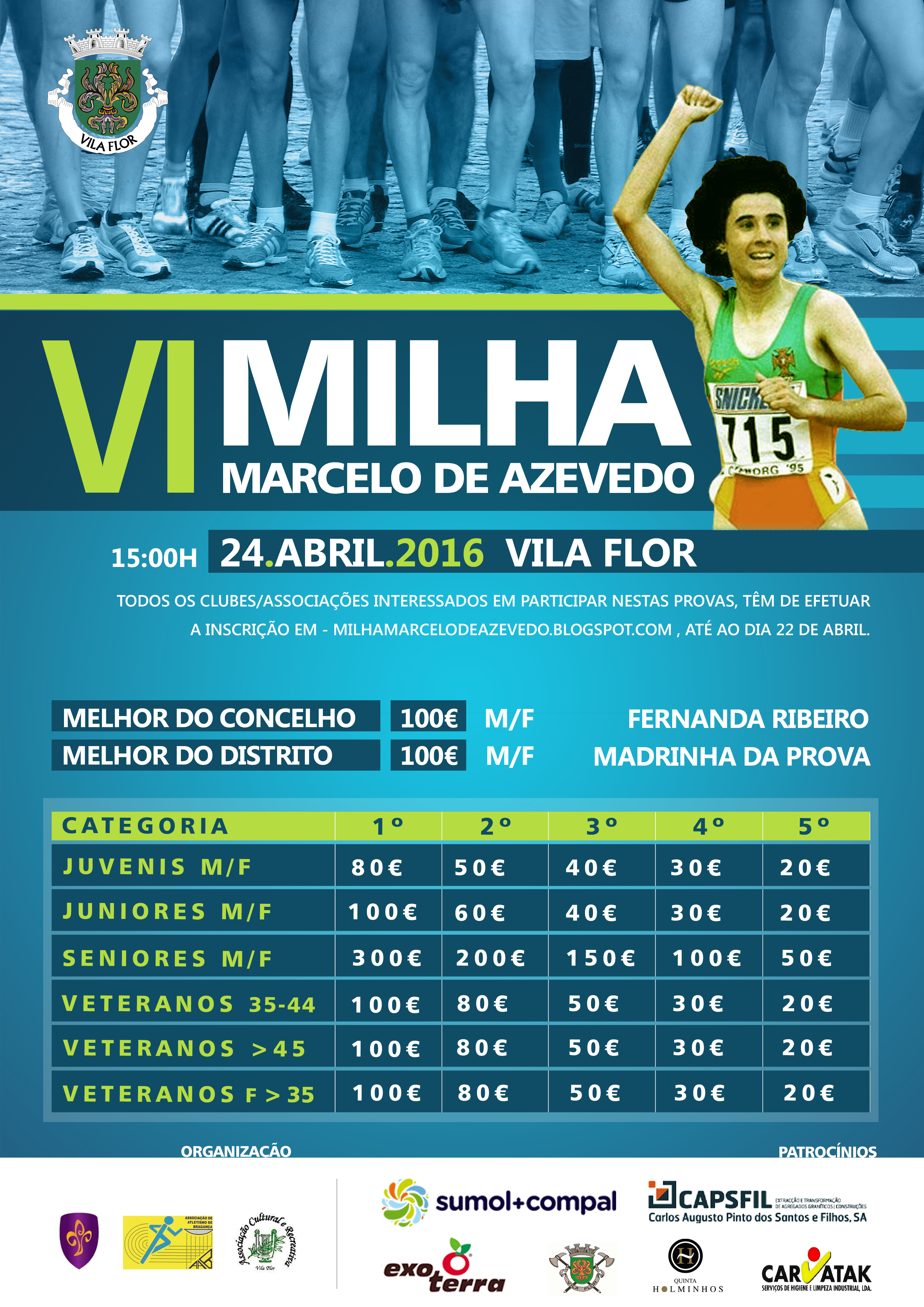 A Câmara Municipal de Vila Flor, com o patrocínio do Senhor Manuel de Azevedo e colaboração da Associação de Atletismo de Bragança, apoio de entidades, instituições e empresas do Concelho, vai realizar a VI Milha Marcelo de Azevedo, dia 24 de Abril, pelas 15 horas.
