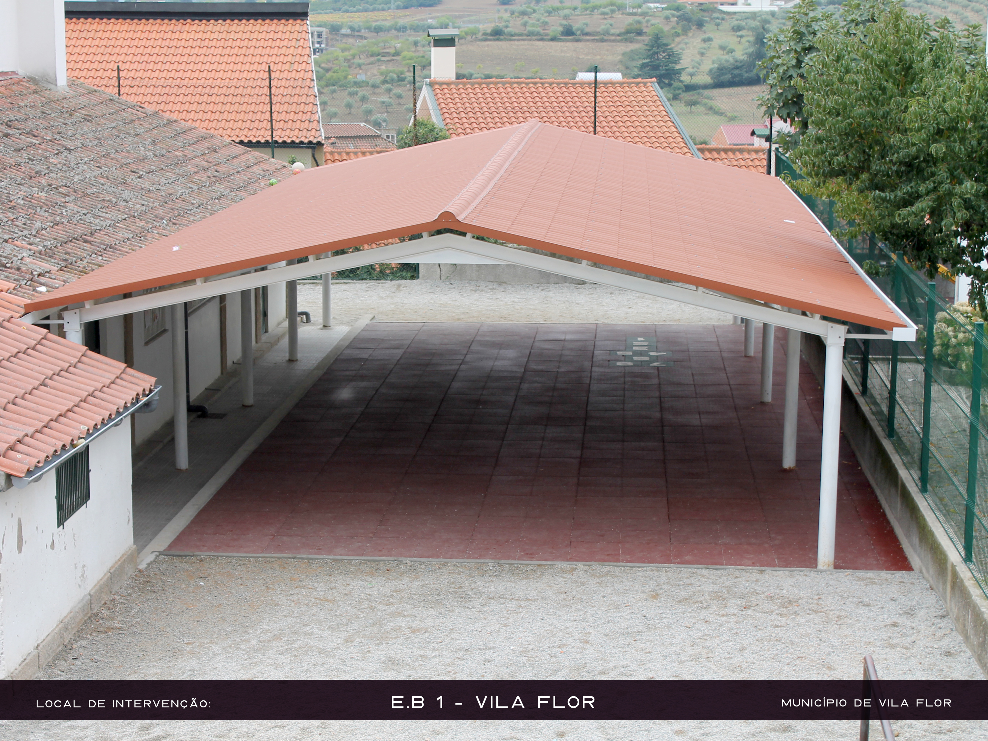 Dotamos todos esses recreios com pavimento de segurança em borracha, assente em betão, com tabelas de basquete e equipamentos de diversão infantis.