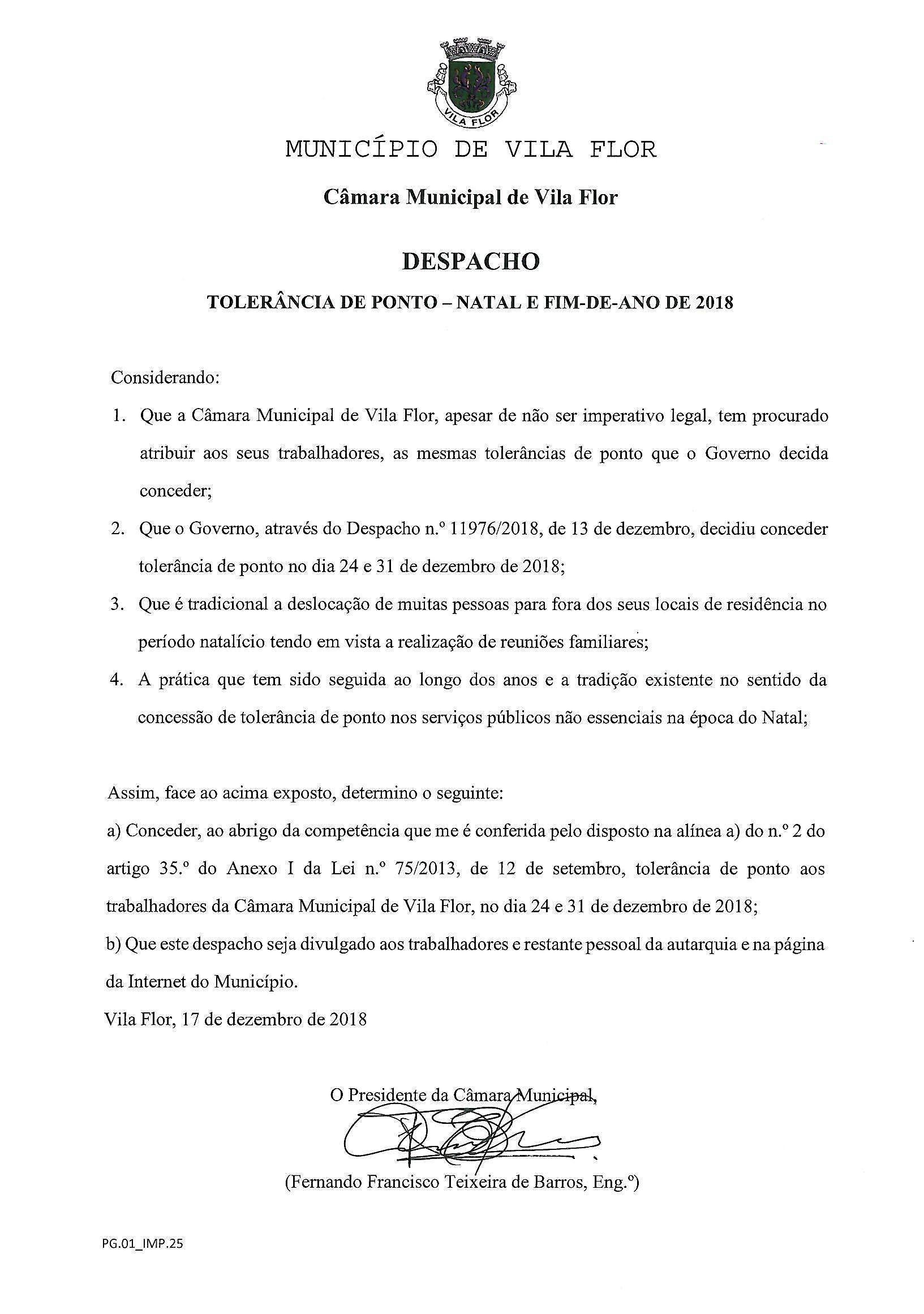 Fecho dos Serviços Municipais no dia 24 e 31 de Dezembro de 2018