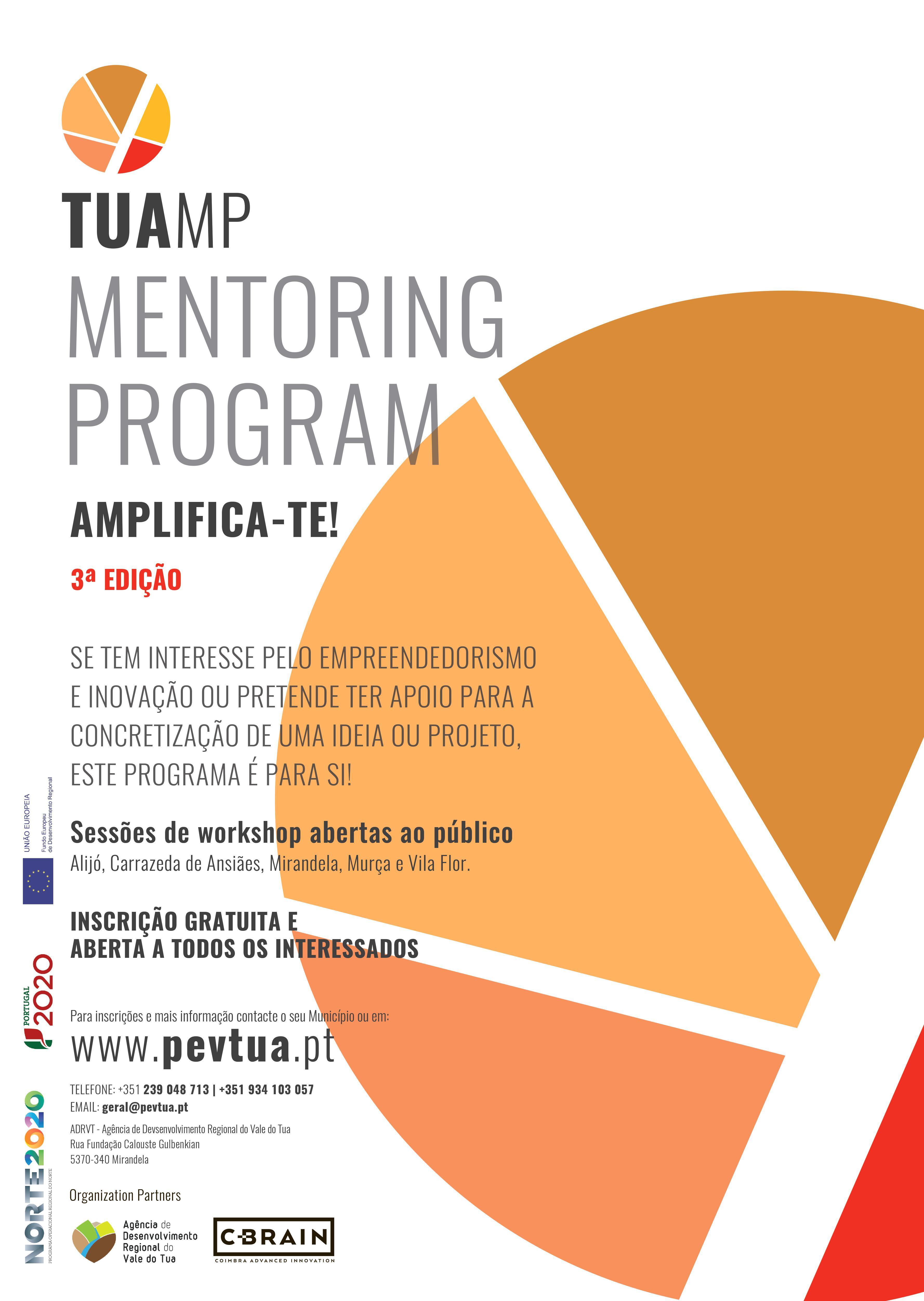 O TUAMP - TUA MENTORING PROGRAM “Amplifica-te!” apresenta-se como um programa de capacitação/formação, tanto para iniciados como para mais experientes, nas temáticas do empreendedorismo. Este culmina numa ação de promoção dos projetos desenvolvidos perante investidores, parceiros de negócio e demais entidades de relevo, através da realização do "pitch de negócio", apresentação de posters e sessão de networking.