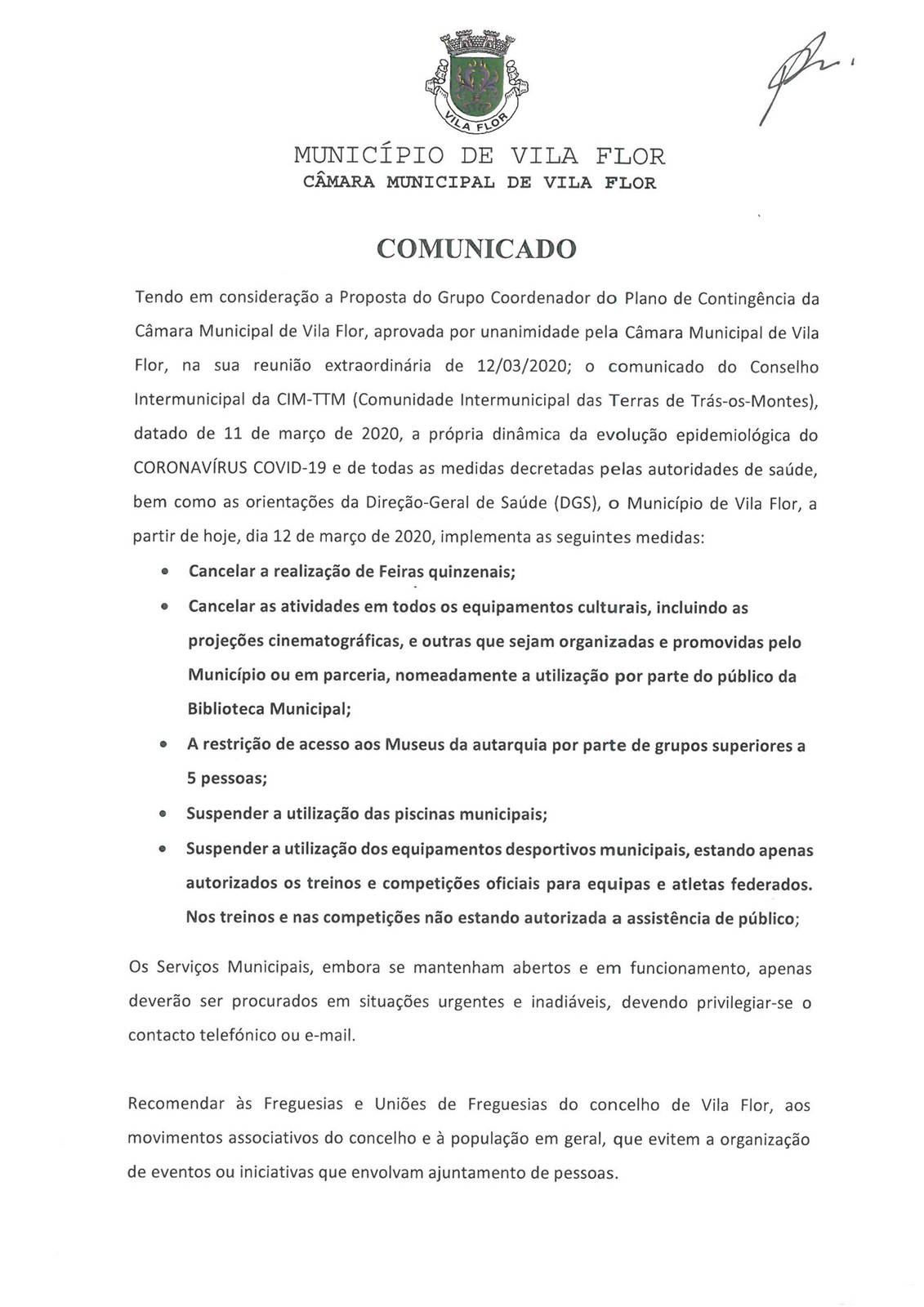 CORONAVIRUS: Município Adopta Medidas Preventivas