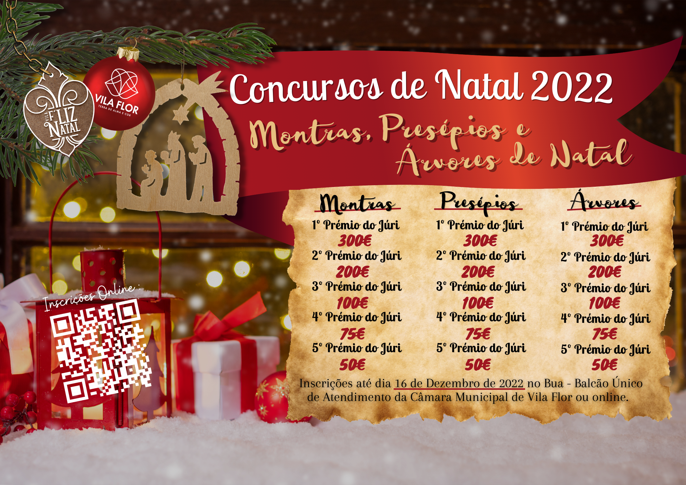 Com o objetivo de promover o simbolismo, a magia e o espírito natalício dos vilaflorenses e de todos quantos nos visitam nesta quadra, a par da segunda edição da Vila F’ Liz Natal, a Câmara Municipal de Vila Flor apostará na promoção dos tradicionais concursos alusivos a esta época, este ano com uma nova modalidade. Para além do concurso de montras e de presépios, terá lugar o concurso de árvores de Natal amigas do ambiente, construídas com recurso a materiais naturais, reaproveitados e/ou reciclados, com vista a estimular a expressão artística, criatividade e imaginação, bem como sensibilizar a população para a problemática da preservação do meio ambiente.