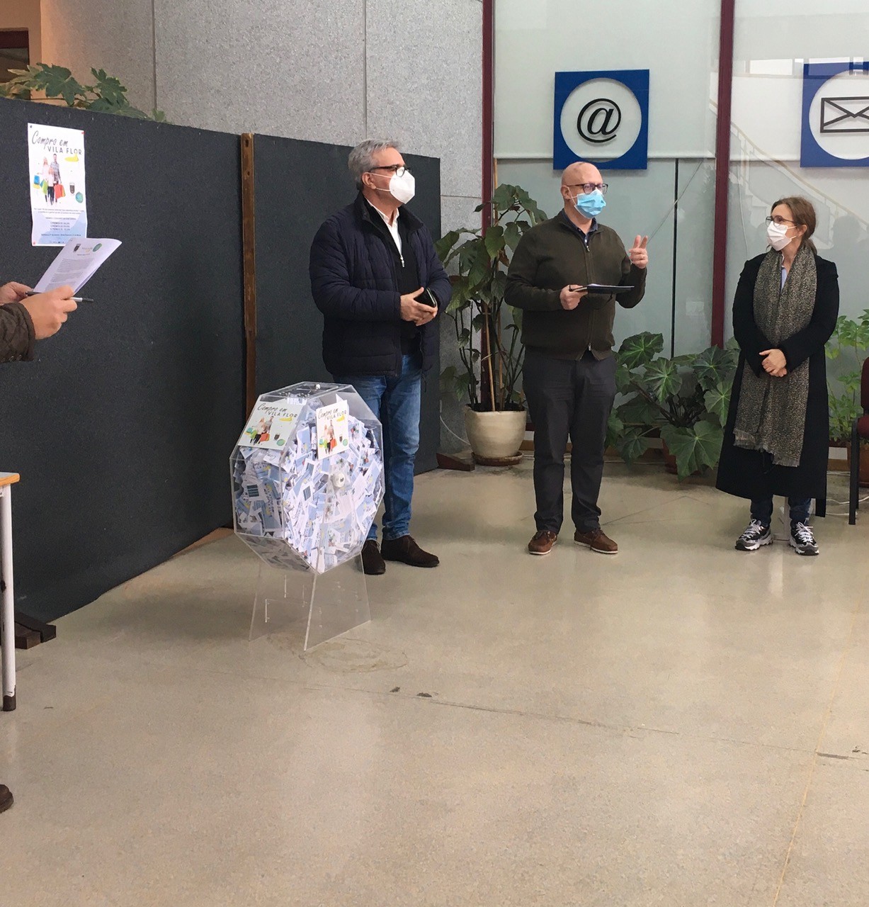 Realizou-se este início de tarde, na Galeria do Centro Cultural, o primeiro sorteio da campanha de apoio ao comércio local "Compro em Vila Flor" promovida pelo CLDS 4G Vila Flor ativa em parceria com a Câmara Municipal de Vila Flor.