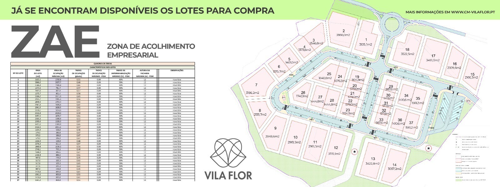 Tal como consta no artigo 4º do Regulamento publicado em Diário da República, o Município de Vila Flor faz saber que terá lugar no dia 9 de setembro, no Auditório Miller Guerra do Centro Cultural, pelas 21h, a sessão pública de esclarecimentos para a abertura do procedimento de venda dos lotes de terreno da Zona de Acolhimento Empresarial de Vila Flor (ZAE).