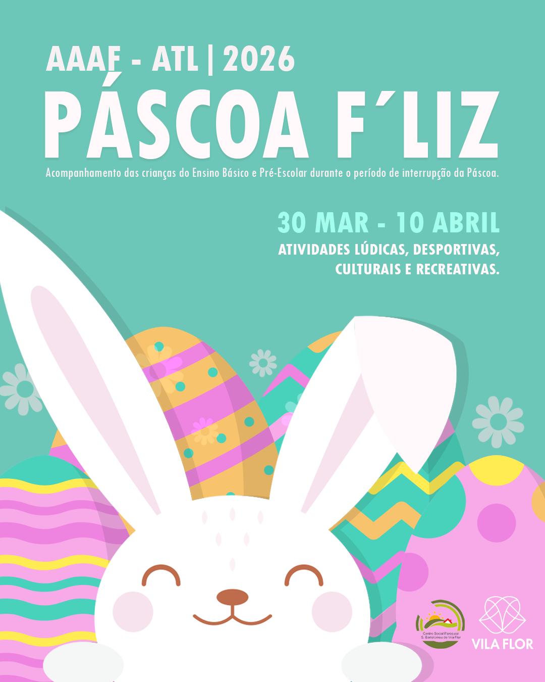 Decorrem a partir de hoje as inscrições para acompanhamento de crianças do Pré-escolar até ao 4ºano do Ensino Básico durante a interrupção de férias de Páscoa, de 30 de março a 10 de abril, visando igualmente esta medida a apoiar os agregados familiares durante a pausa letiva. A "Páscoa F´Liz é uma atividade gratuita e apresenta-se com um plano de atividades diversificado e de caráter lúdico-pedagógico, através do Gabinete de Educação, Desporto e Juventude e da Unidade de Envelhecimento Ativo, em parceria com o Centro Social e Paroquial São Bartolomeu de Vila Flor.