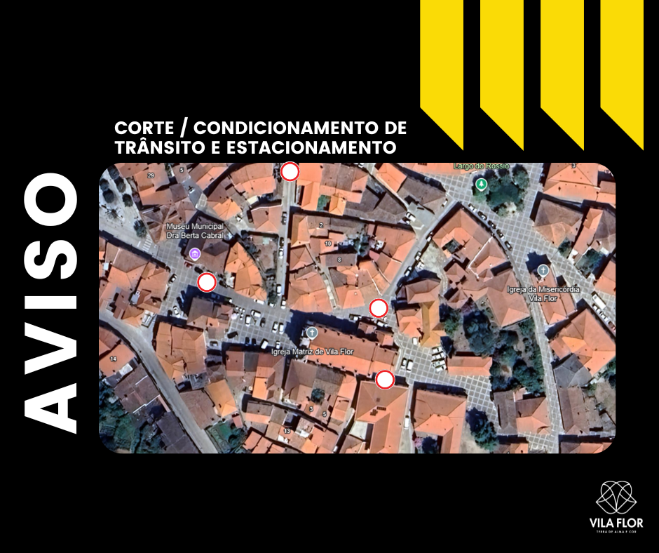 Em virtude da realização do concerto musical Portocello e de forma a assinar o Dia Europeu sem Carros, no âmbito da semana europeia da mobilidade, dias 21 e 22 respetivamente, informamos que o estacionamento no Largo da Igreja Matriz estará condicionado, pelo que agradecemos a compreensão de todos.