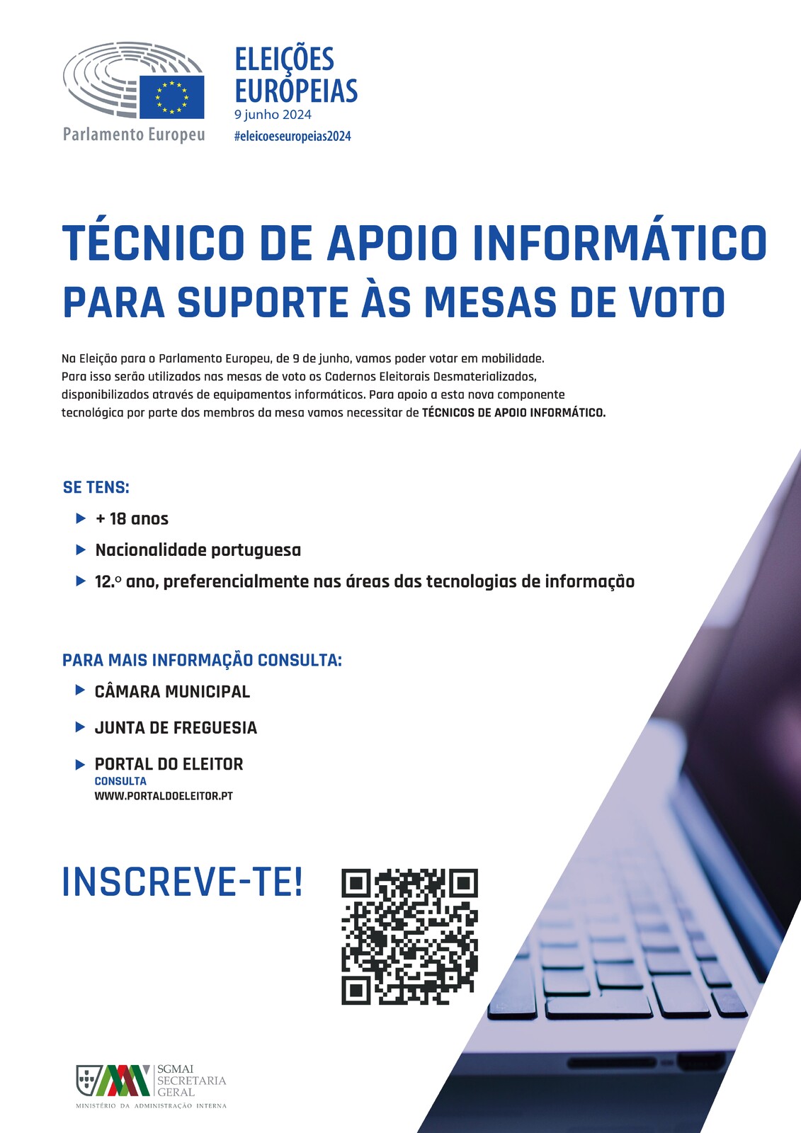 RECRUTAMENTO DE TÉCNICOS DE APOIO INFORMÁTICO | ELEIÇÃO DO PARLAMENTO EUROPEU 2024