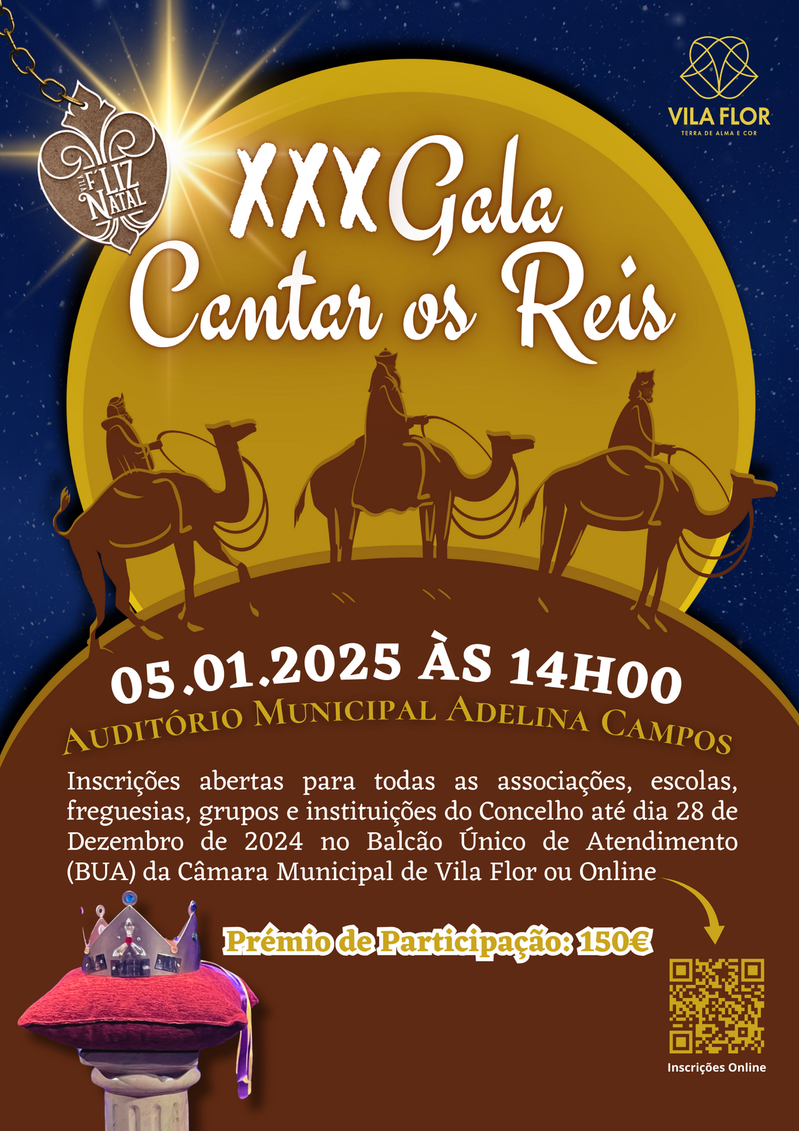 É intenção da Câmara Municipal de Vila Flor promover a já tradicional Gala do «Cantar os Reis», este ano de 2025 a comemorar os seus 30 anos de existência. Aberta a todas as freguesias, grupos e instituições do Concelho de Vila Flor este evento terá lugar no dia 5 de Janeiro de 2025, no Auditório Adelina Campos do Centro Cultural de Vila Flor, pelas 14:00h.